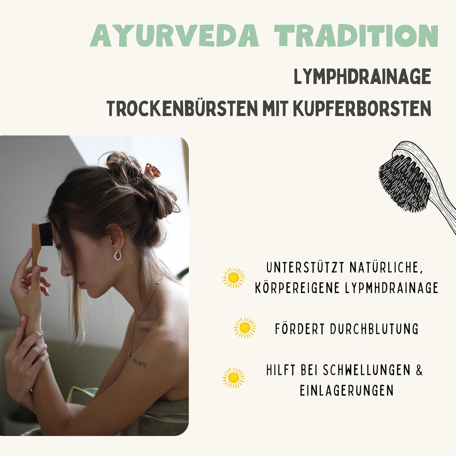 Gesichtsbürste ja, aber nicht Normal! Die ionischen Kupferborsten machen unsere Trockenbürste fürs Gesicht besonders. Damit ist sie nich „nur“ eine Massagebürste, sondern hilft Schwellungen zu reduzieren und bringt frischen Glow!