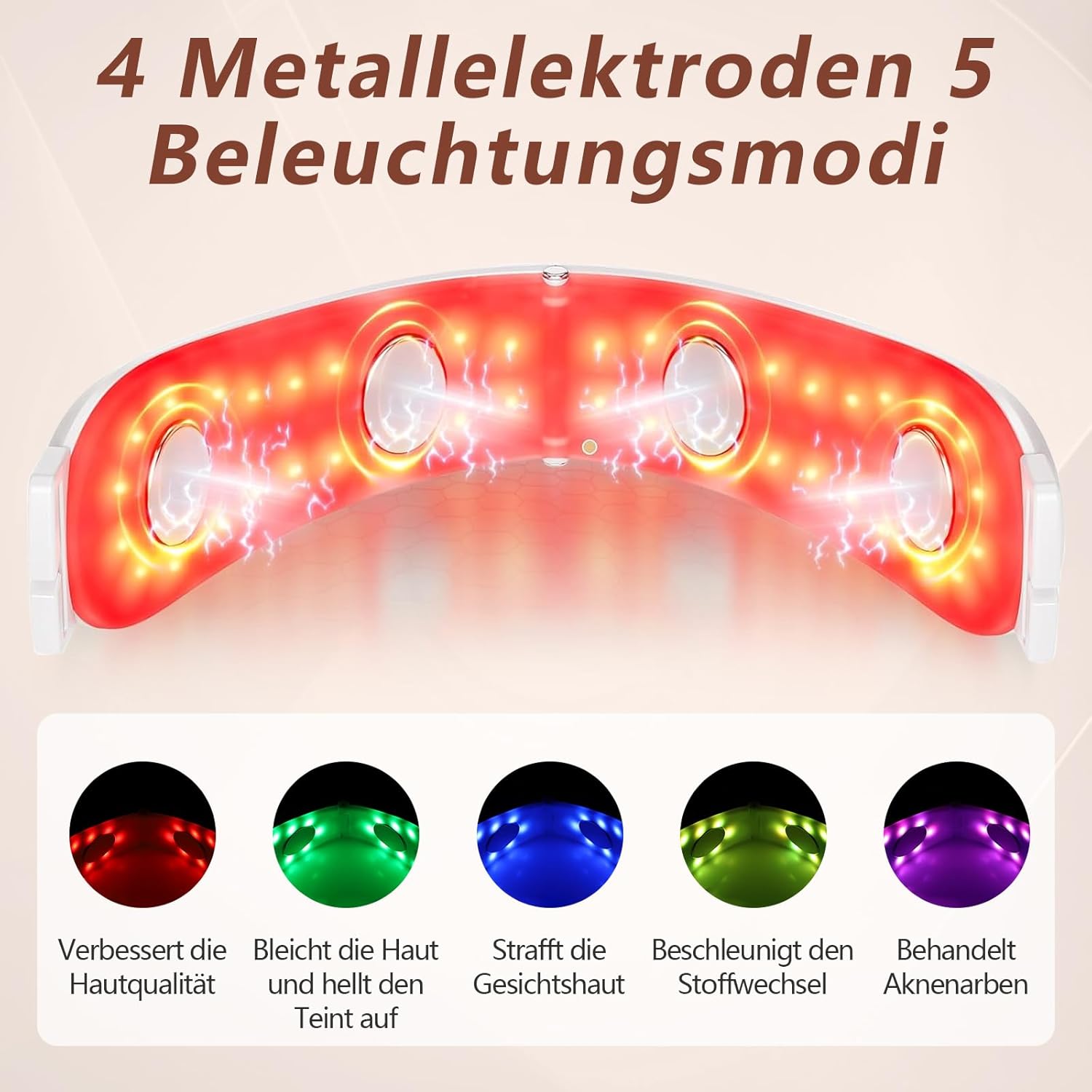 Face massager: the double chin remover uses EMS microcurrent technology and has five different LED beauty products (red, green, blue, orange and purple) as well as 26 luminous beads. By irradiating with different wavelengths, it tightens the facial skin and makes it shine