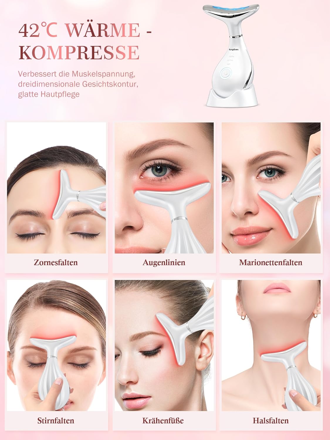 42°C CONSTANT TEMPERATURE HEATING: The constant temperature design of 42°C gently stretches the skin, promotes blood circulation and collagen production while improving nutrient absorption. It also helps eliminate toxins, improve fine lines, wrinkles, wrinkles, forehead wrinkles, neck wrinkles, crow’s feet and sagging skin, and make your skin smooth, firm and radiant.
