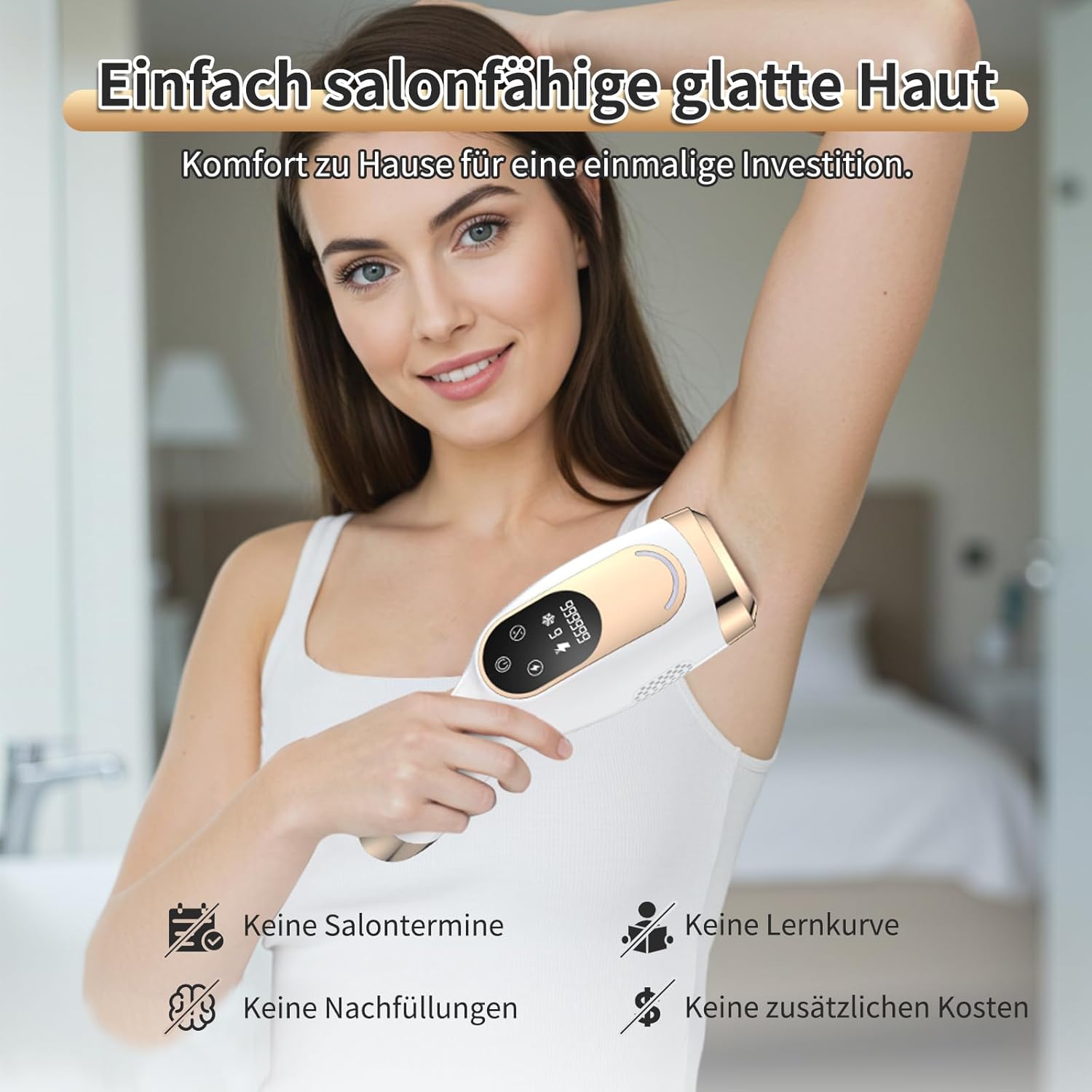 All-in-one perfection: Fast, efficient & long-lasting – With up to 75 light pulses per minute, the hair removes all over the body in just 15 minutes. The advanced 600-1200nm full spectrum light technology hits hair follicles at different depths and ensures a permanent reduction of up to 93% in 4-6 weeks.